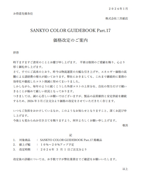 SANKYO COLOR GUIDEBOOK part,17 価格改定のご案内